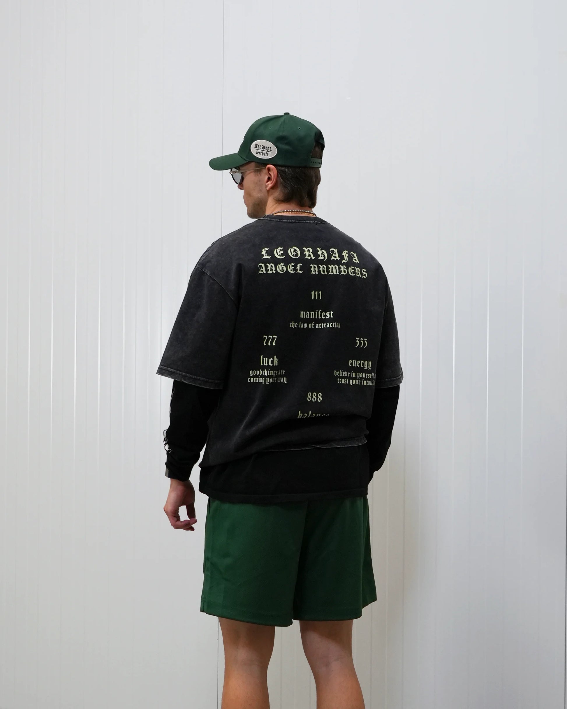 Lerne unser Angel Numbers T-Shirt kennen – sorgfältig gefertigt aus hochwertiger 230 GSM Baumwolle für unvergleichlichen Komfort und Langlebigkeit. Mit einem LR Circle Print auf der Vorderseite und dem eindrucksvollen „Leorhafa Angel Numbers“ Print auf der Rückseite. Der Vintage-Wash verleiht ihm einen zeitlosen Look, während der Oversized Fit maximalen Tragekomfort bietet. Hergestellt aus 100 % Baumwolle – ein absolutes Must-have für deine Garderobe.